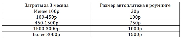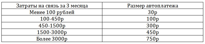 Услуга автоплатеж Билайн имеет абонентскую плату. Ее размер зависит от срока пользования данной опцией. Так, за первые сутки со счета будет списано 0,5 рублей. Начиная со второго дня и далее, эта сумма вырастет до 0,75 рублей.