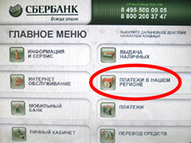 - в открывшемся меню выбираем «платежи в моем регионе»;