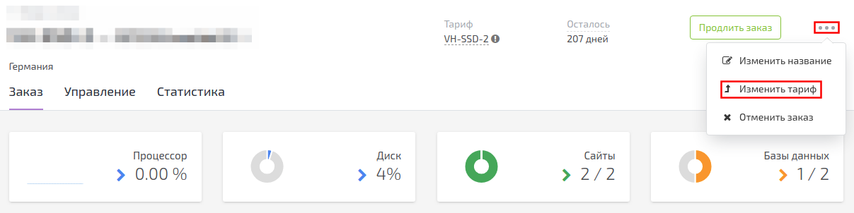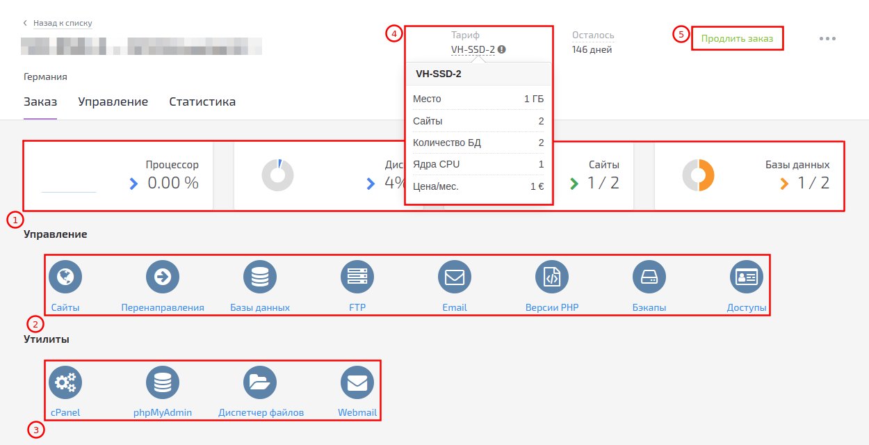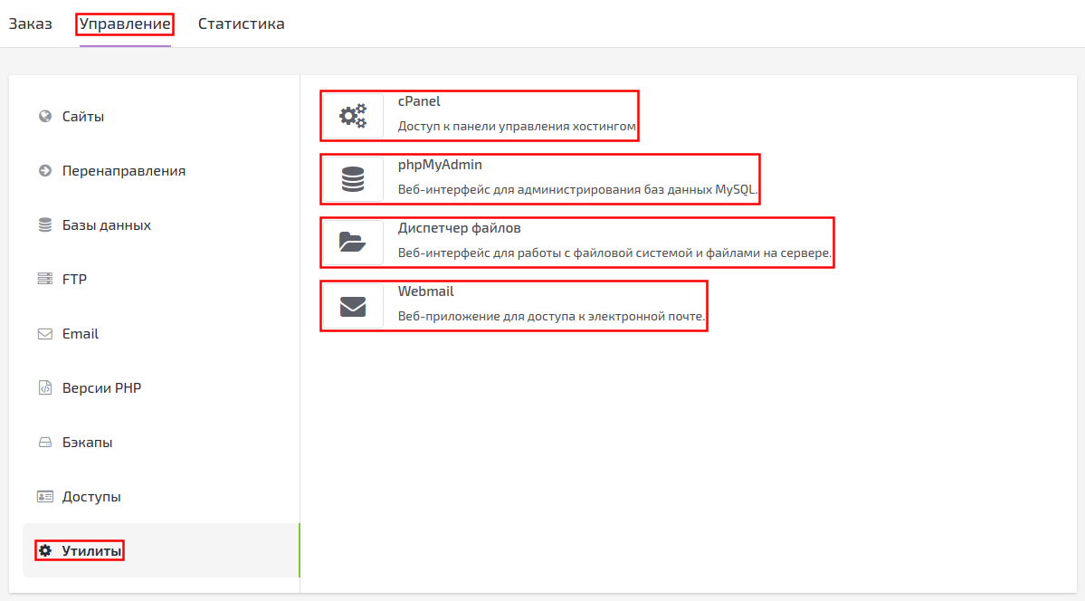 В этом разделе вы можете выполнять технические операции с вашим заказом, не используя панель управления cPanel: