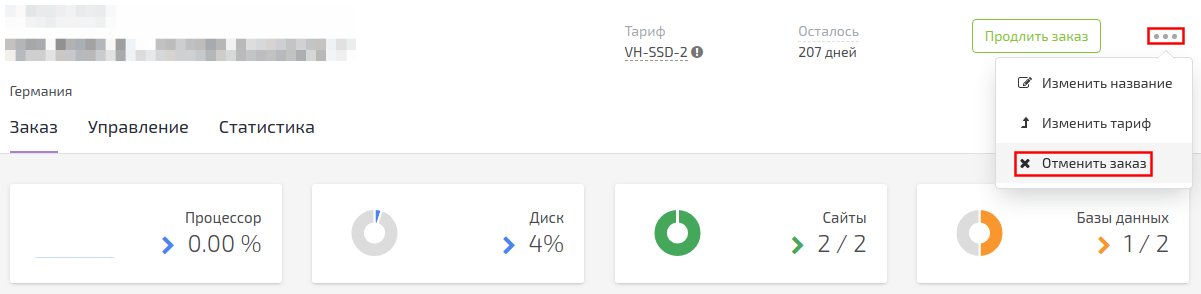 Если же вы хотите полностью отменить заказ и вернуть остаток денежных средств за неиспользованные дни, то в этом случае вам нужно обратится в нашу службу поддержки через систему тикетов.