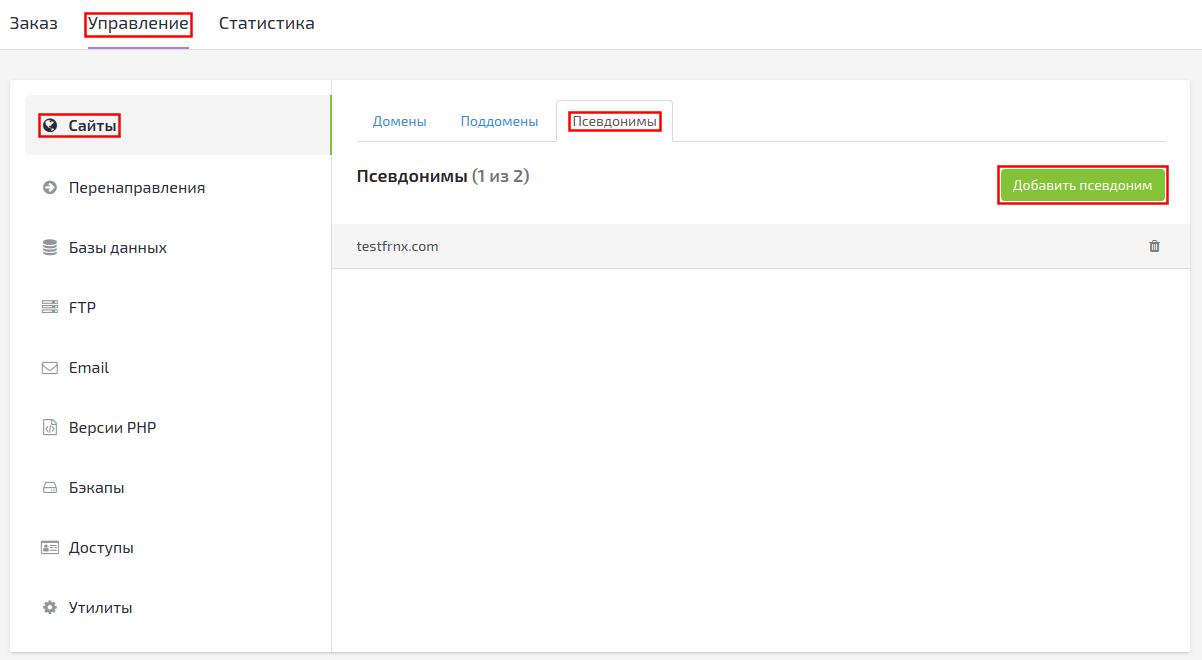 Псевдоним (Алиас) — Псевдонимы домена позволяют предоставить доступ к вашему веб-сайту под другим доменным именем.