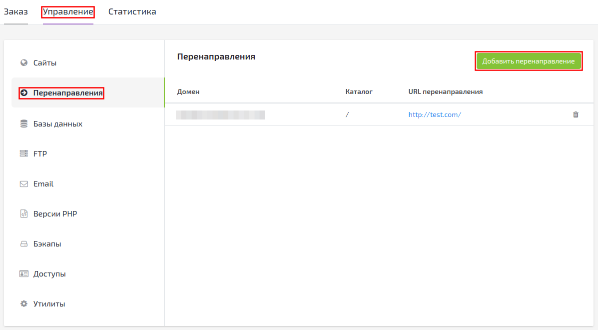 - Возможность добавлять редиректы с домена на домен или с одной страницы сайта на другую.