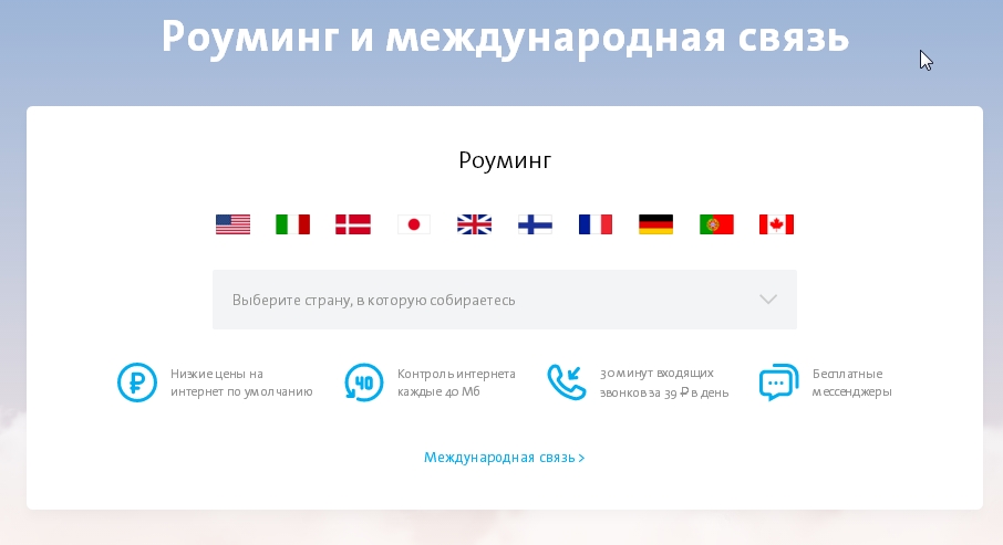 Если Вы собираетесь в другую страну, то тарифы и стоимость услуг можно уточнить ниже: